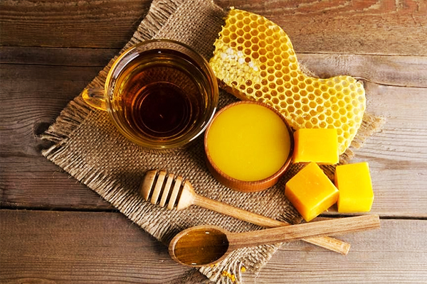Golden organic honey harvested from pristine hives for ultimate purity.